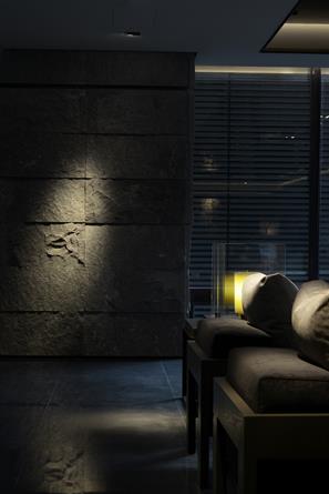 在紊亂的環境裡,要保持一種姿態特殊的單純⋯⋯變成一種設計的難度。 從開始接近主入口,以不期而遇的心情見到一座寧靜的小前庭, 迴轉遮蔽的清水模牆體,計劃好的開口及高度比例,讓玻璃透明的大廳包裹在其中。 人與車的動線川流其中,卻不明顯⋯⋯彷彿還只是一座靜止的庭院、水及高聳枝幹的櫸木, 鏡射的影像添加變動有趣的元素。 如是,在紊亂的環境裡,保持一種姿態特殊的單純空間場景⋯⋯稱之藏境。